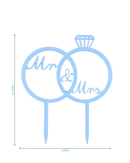 Mr & Mrs In Rings Cake Topper (Custom Colour)