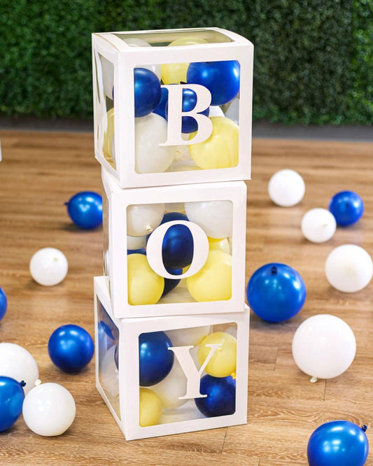 Transparent 'BOY' White Balloon Boxes (3 Pack)