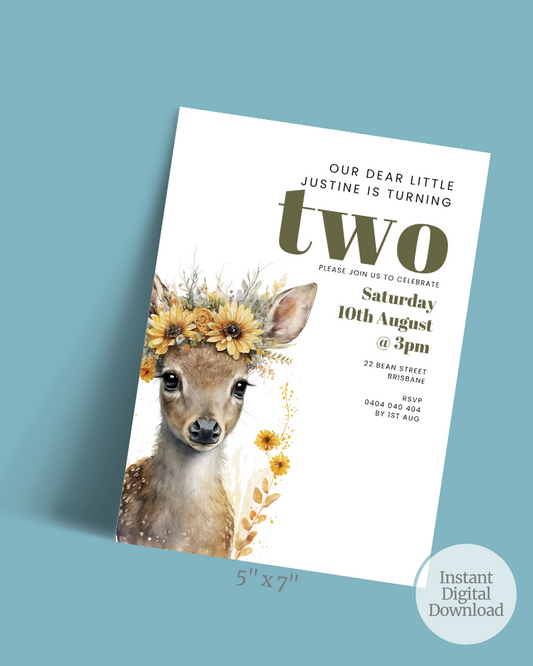 Deer 2nd Birthday Party Invite | Digital Download ALW90