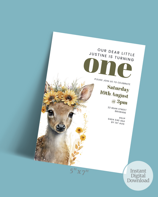Deer 1st Birthday Party Invite | Digital Download ALW90