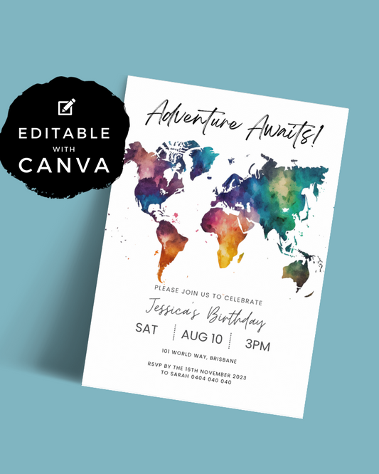 Adventure Awaits World Map Party Invite | Digital Download ALW88