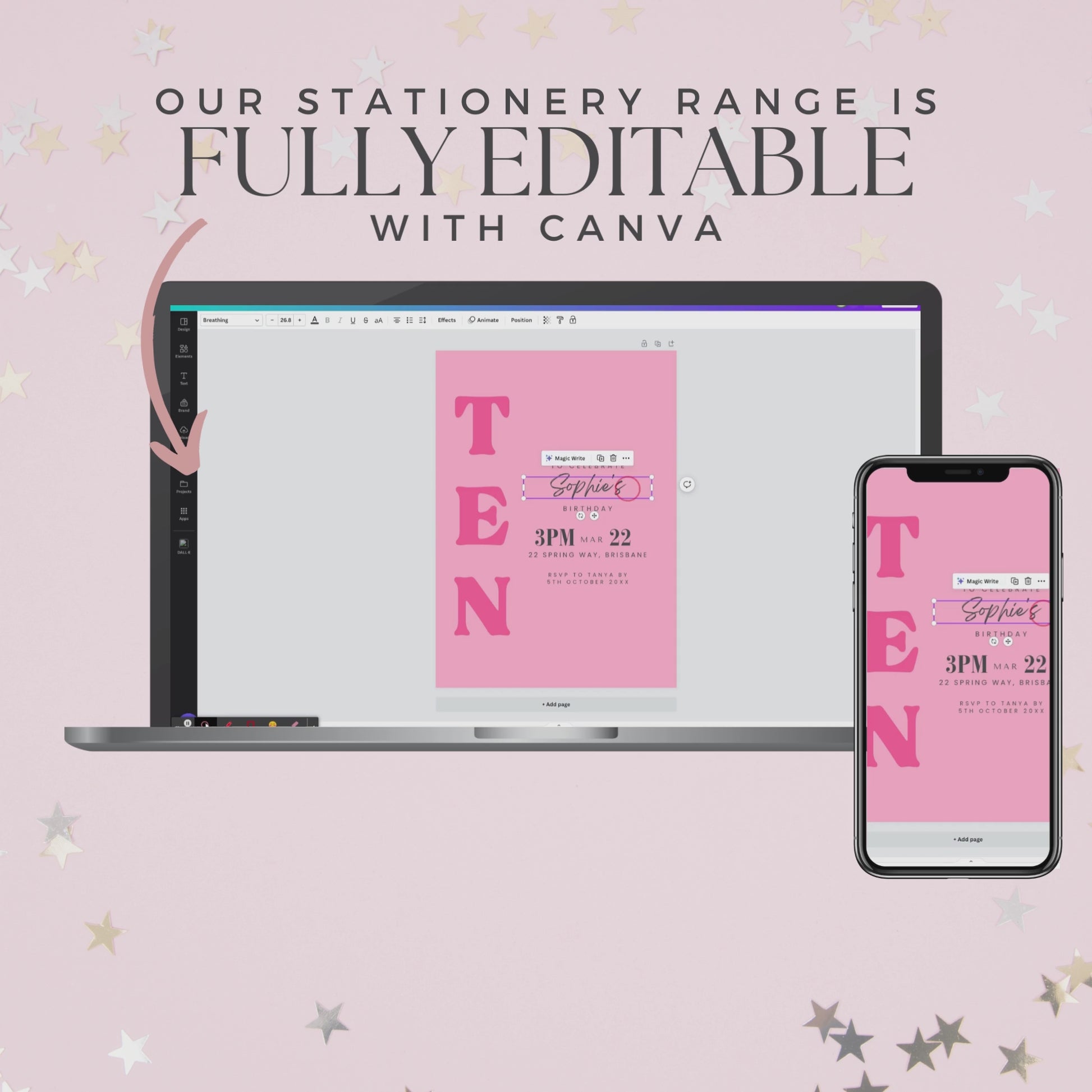 Floral Pink Birthday Party Invite Ages 1-90 | Digital Download ALW13