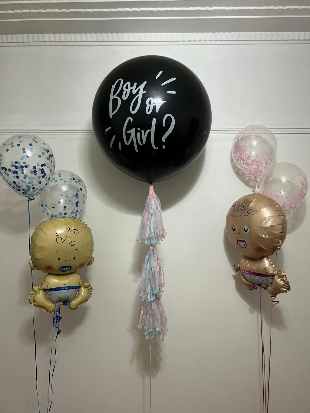 - 1x 90cm Black "Boy or Girl?" Balloon
